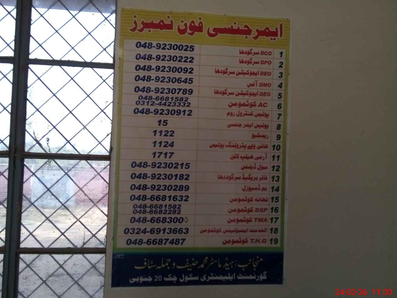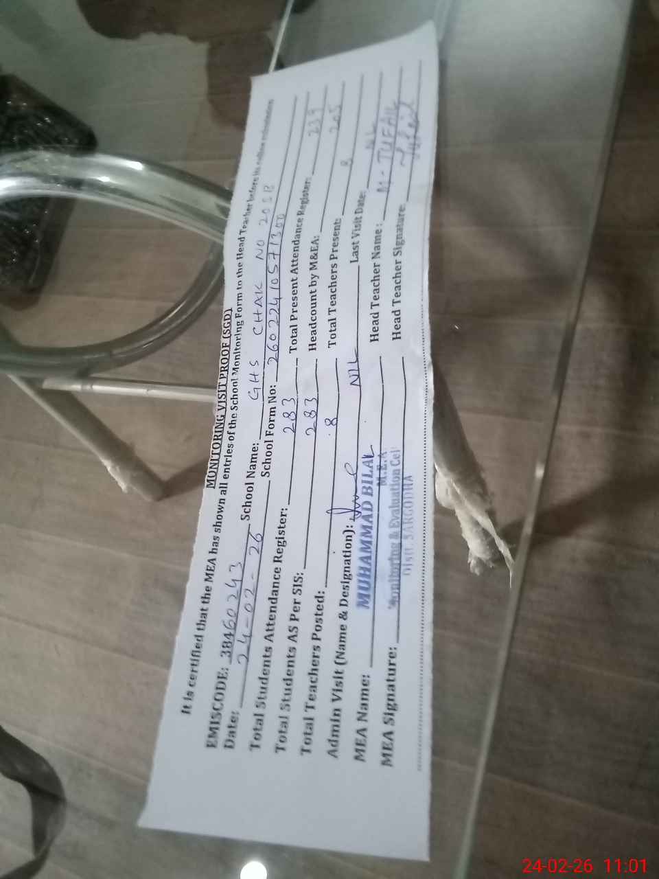 | EMIS Code: 38460243 | Name of School: GHS CHAK NO.20 SB | |||