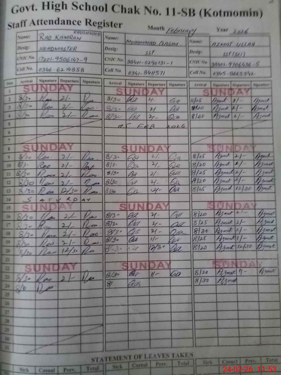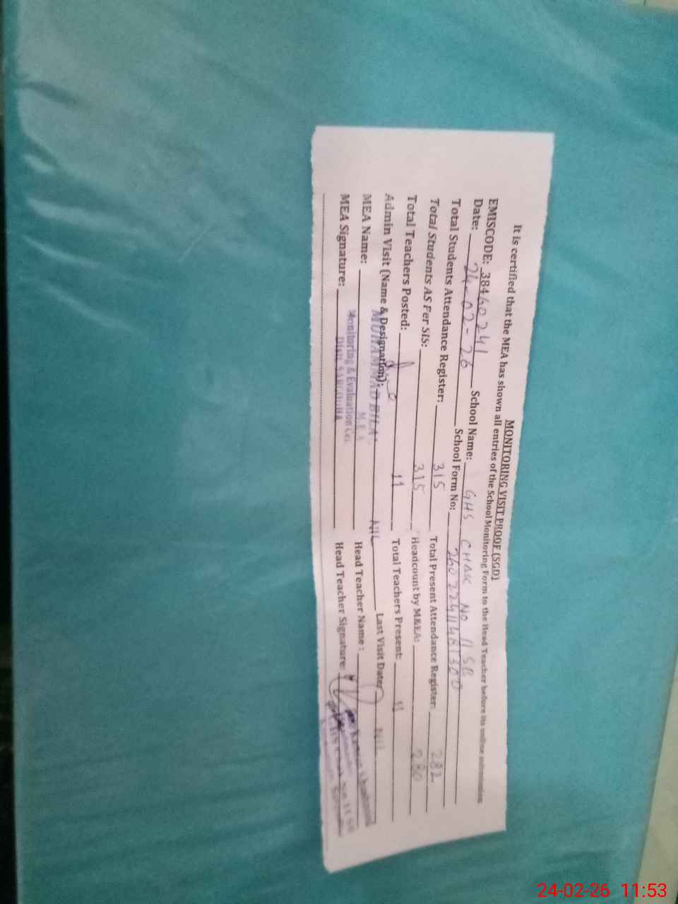 | EMIS Code: 38460241 | Name of School: GHS CHAK NO.11 SB | |||