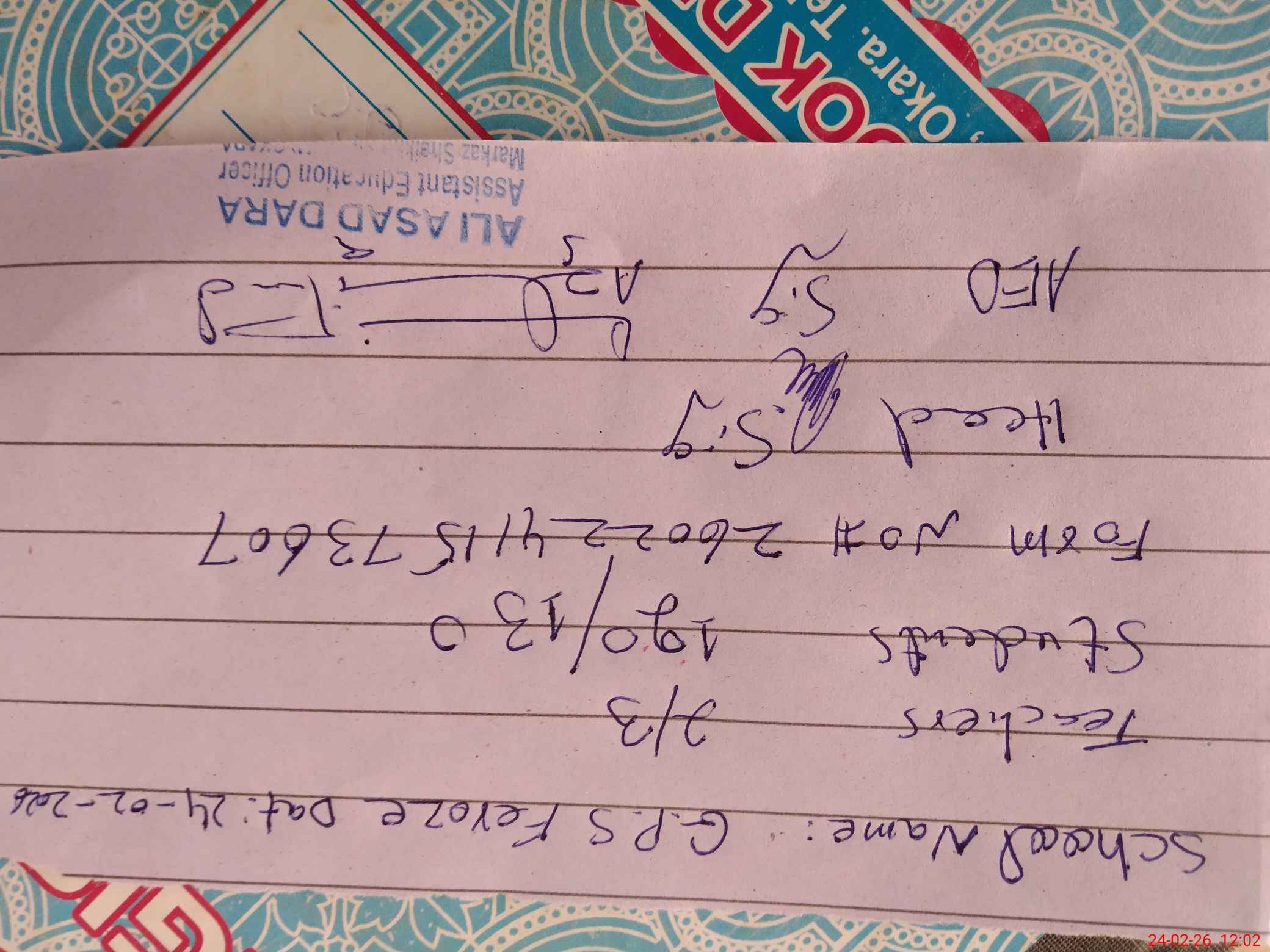 | Name: Mu**** Ak**** Al**** Designation: (School Headmaster's/Headmistress's) PST Phone/Cell Number: 03**** |