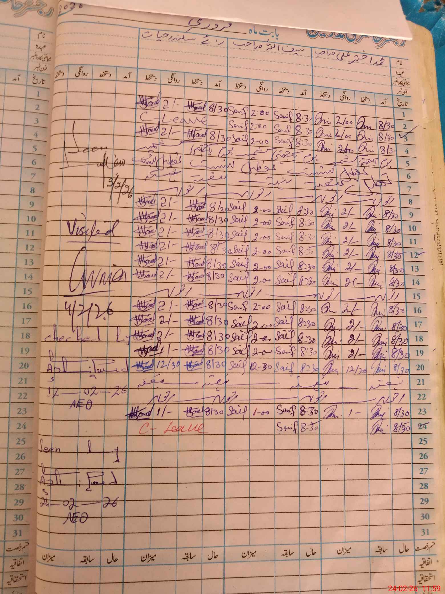 | CNIC | Full Name | Designation | R/C | Absence During Last Calender Month |