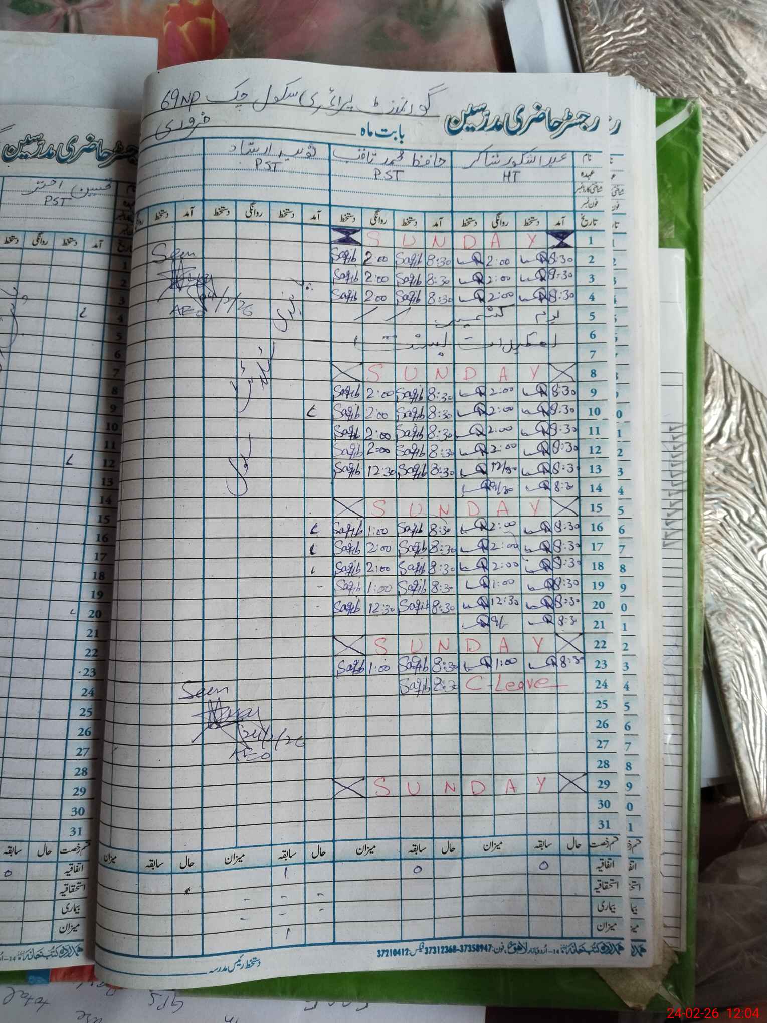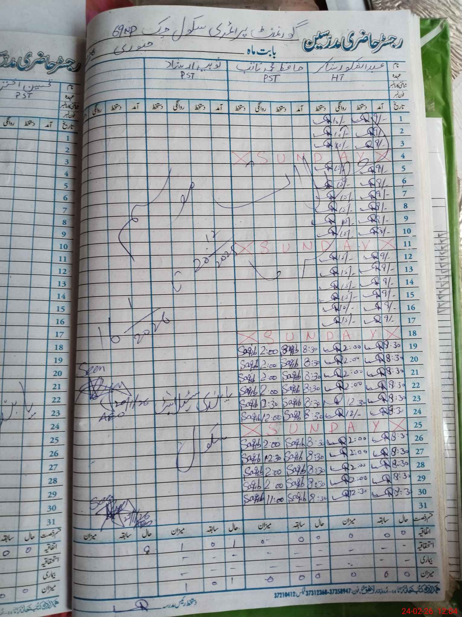 | Name: AB**** SH**** Designation: (School Headmaster's/Headmistress's) PST/PTC/JV Phone/Cell Number: 03**** |