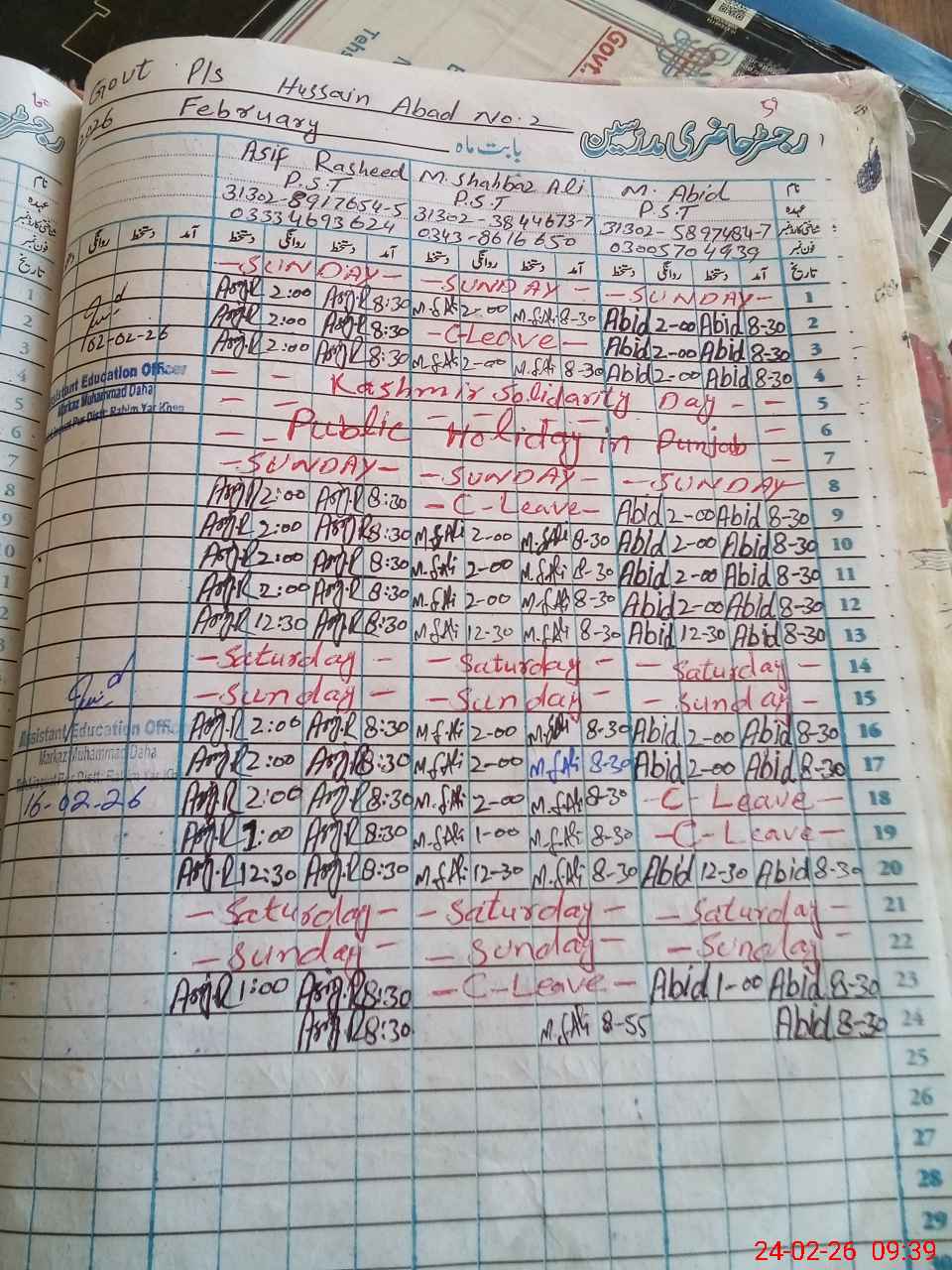 | Name: MU**** AB**** Designation: (School Headmaster's/Headmistress's) PST Phone/Cell Number: 03**** |