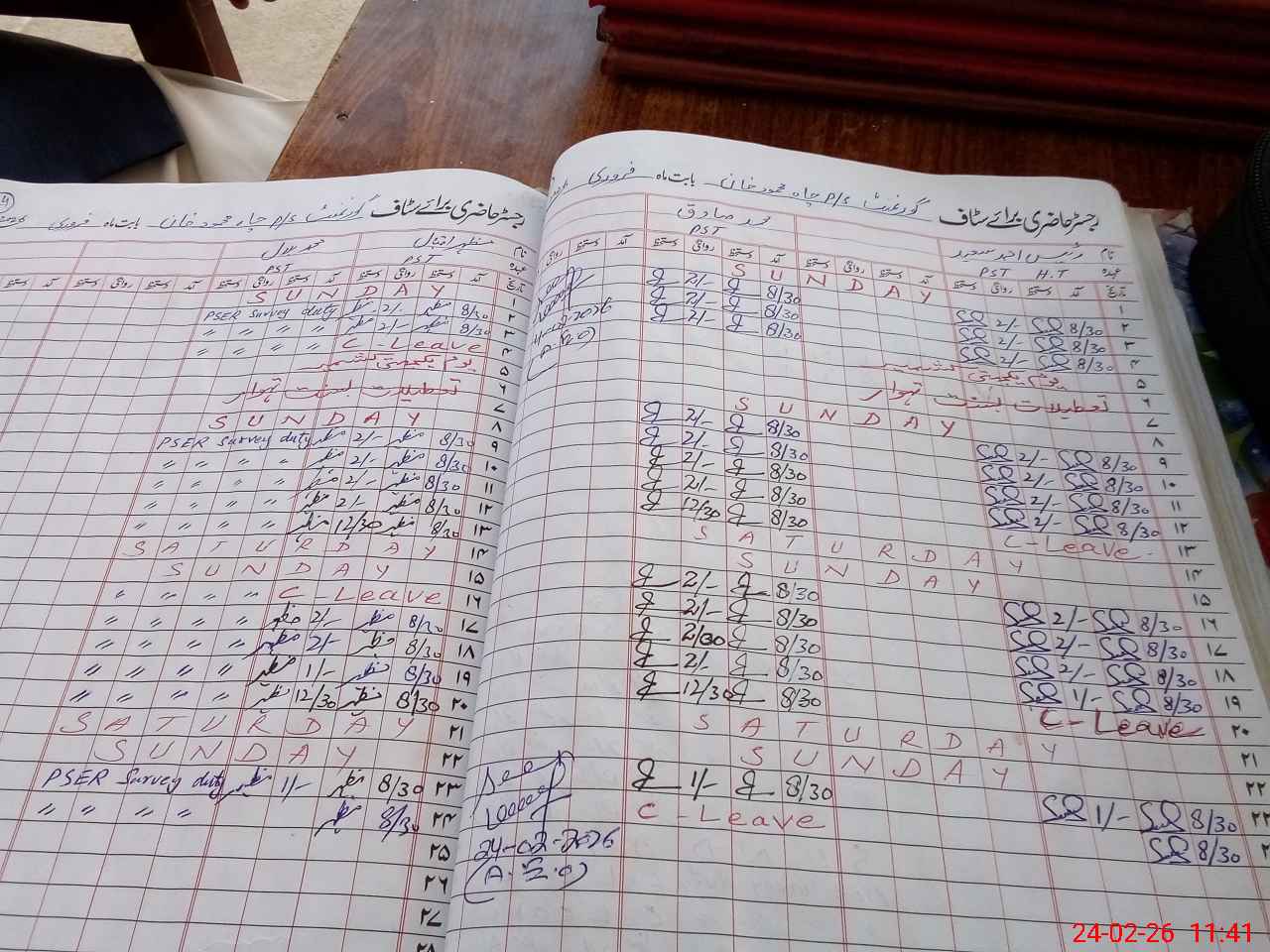 | Leave | Duty | Absent | Maternity | Medical | Ex- Pak |