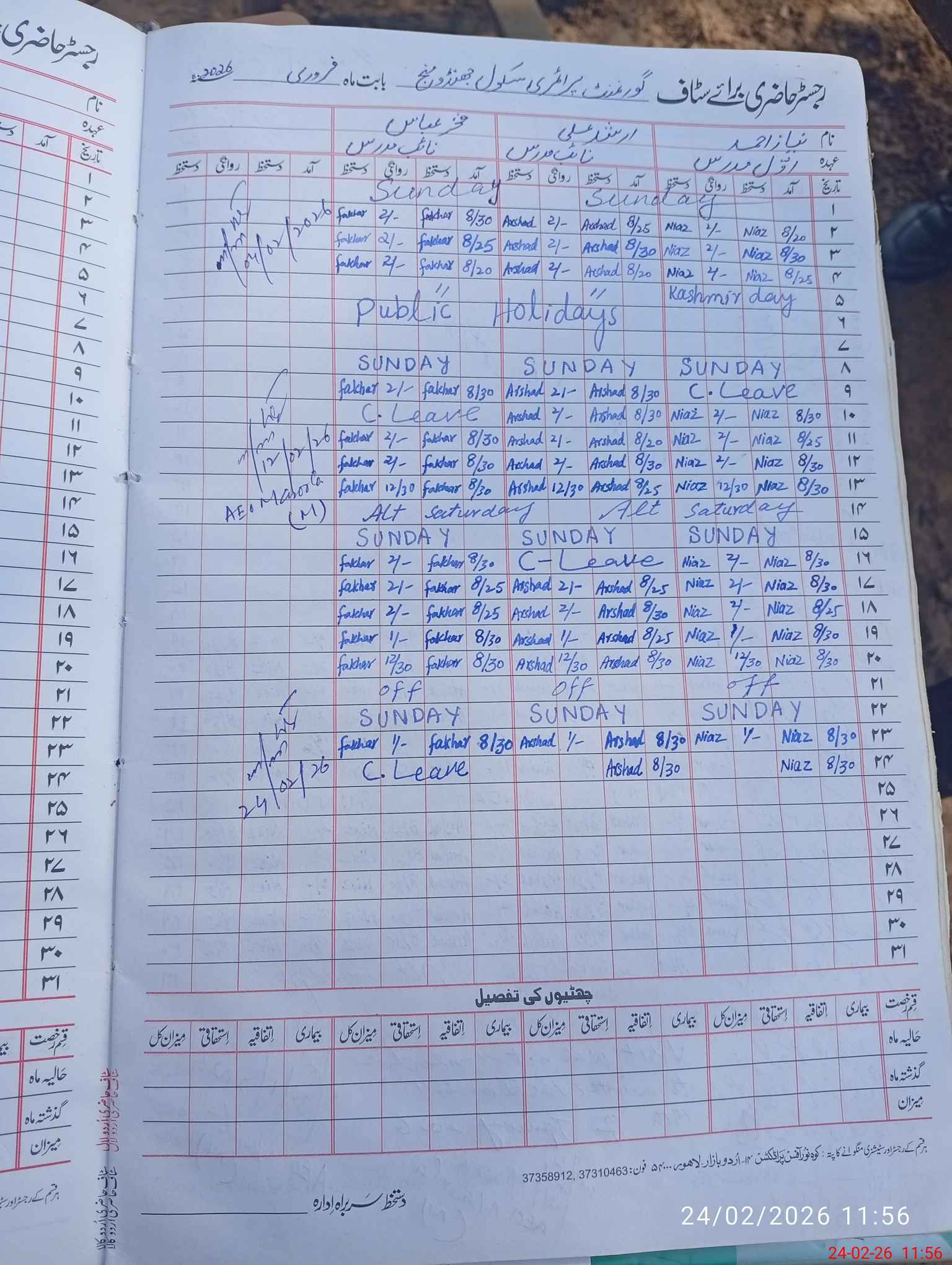 | CNIC | Full Name | Designation | R/C | Absence During Last Calender Month |
