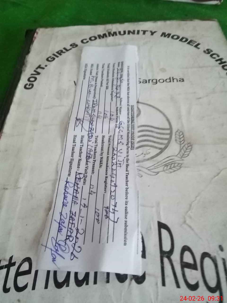 | Attendance Register | Head Teacher | MEA with School | Visit Proof |
