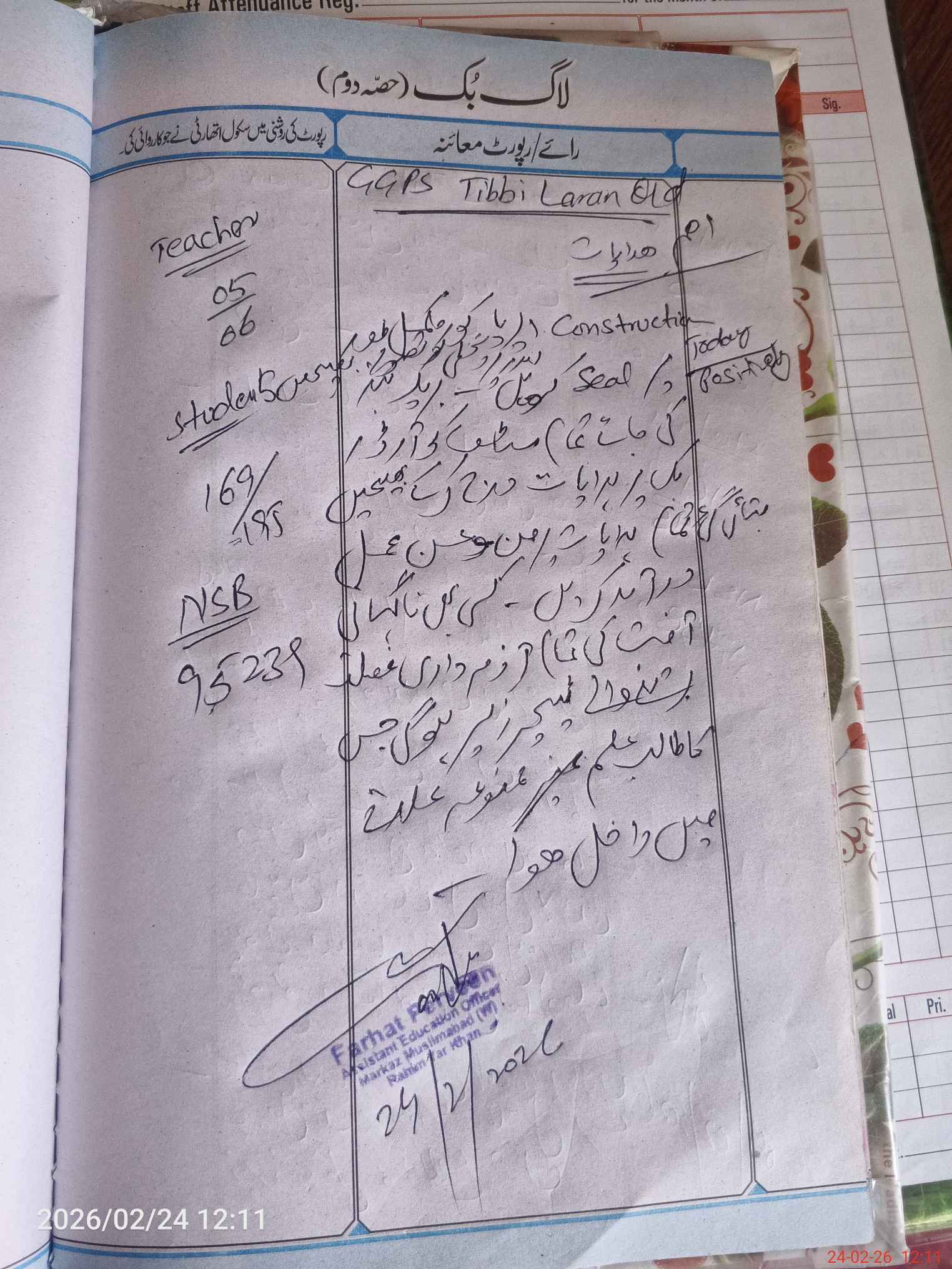| Certified that this School was Inspected by the Undersigned MEA/DMO Today and the Information Stated Above is as Per Record. | |||||
