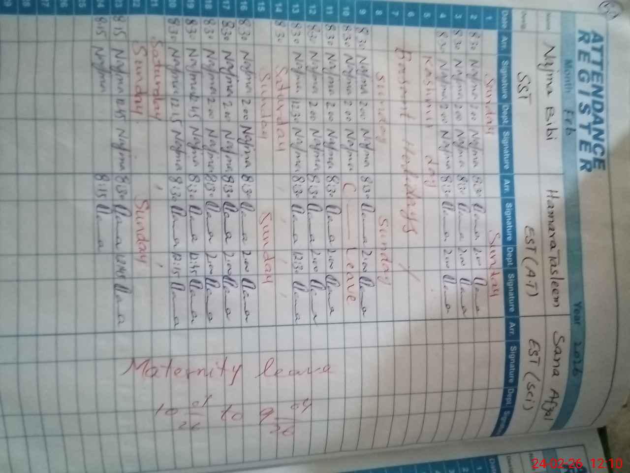 | Leave | Duty | Absent | Maternity | Medical | Ex- Pak |