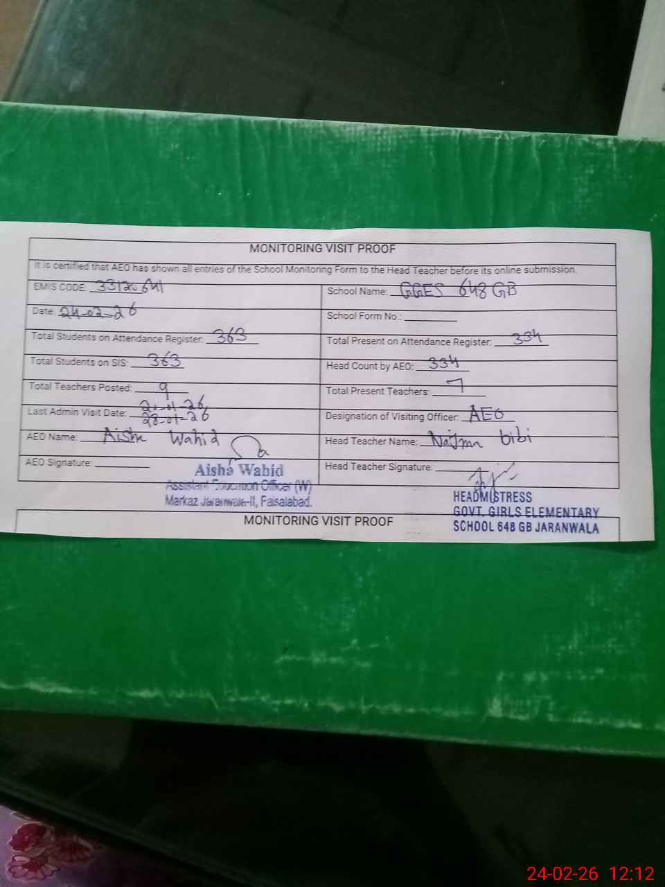 | EMIS Code: 33120641 | Name of School: GGES CHAK NO 648 GB | |||