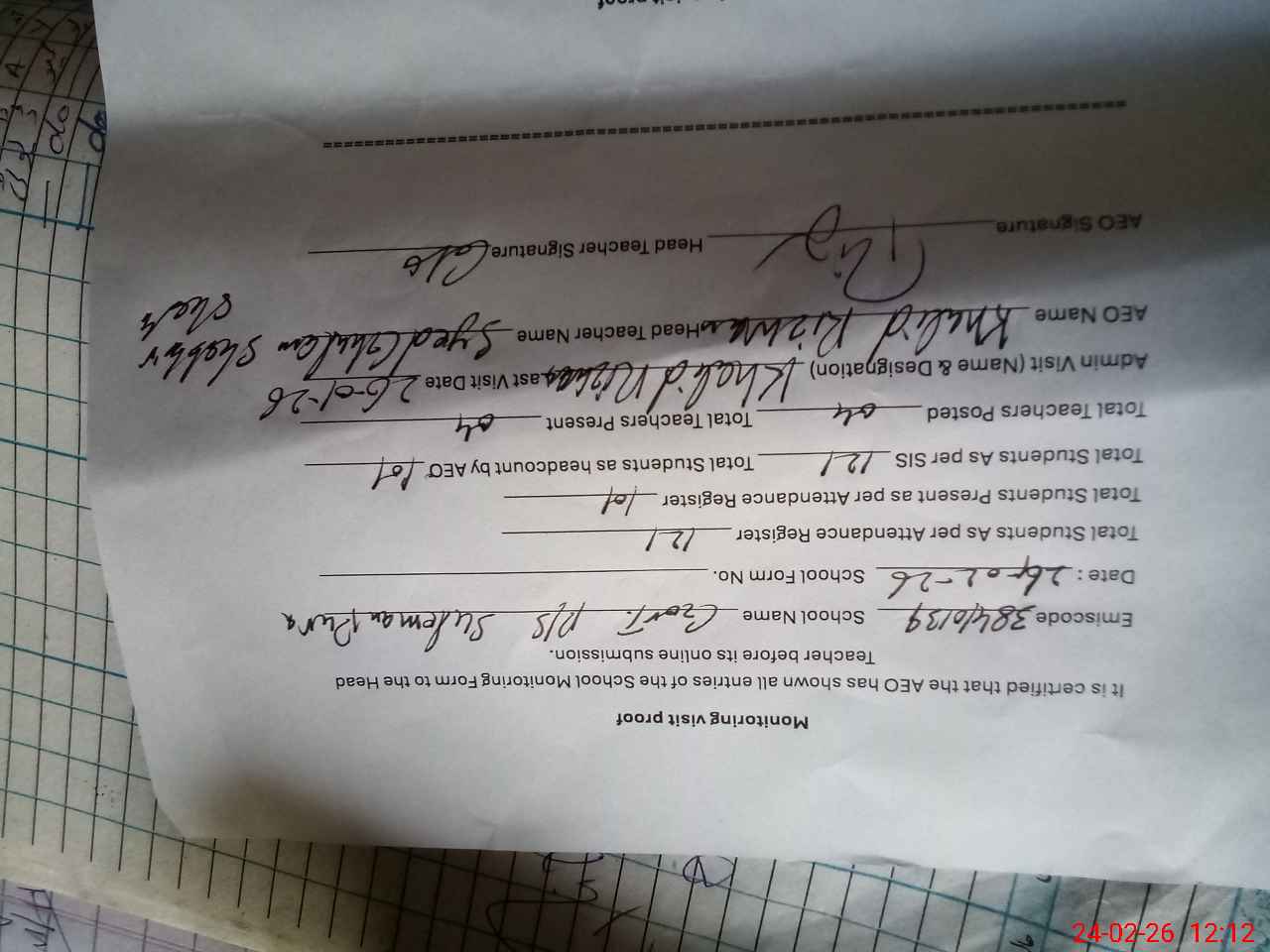 | Certified that this School was Inspected by the Undersigned MEA/DMO Today and the Information Stated Above is as Per Record. | |||||