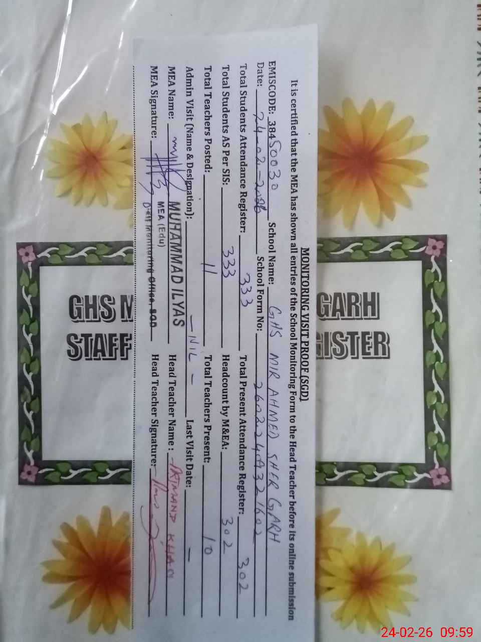 | EMIS Code: 38450030 | Name of School: GHS MIR AHMED SHER GARH | |||