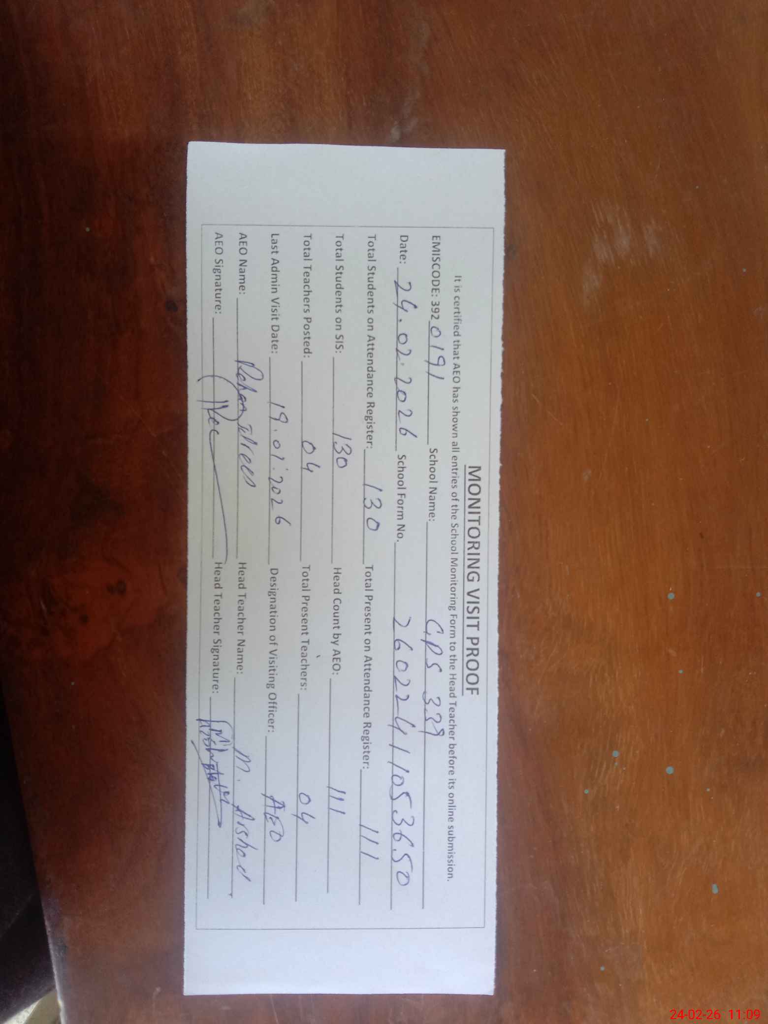 | EMIS Code: 39220191 | Name of School: GPS 339 EB | |||
