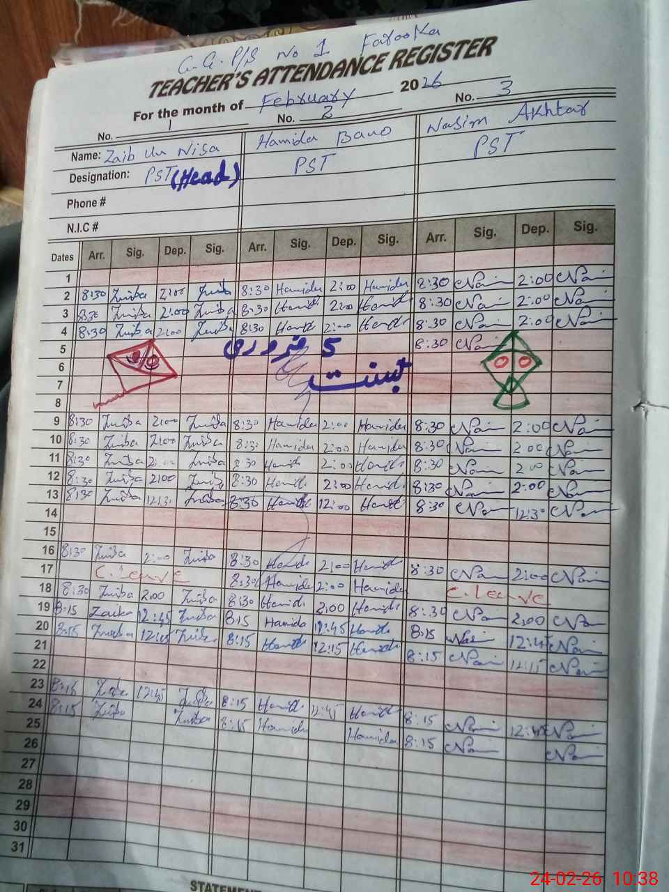 | CNIC | Full Name | Designation | R/C | Absence During Last Calender Month |