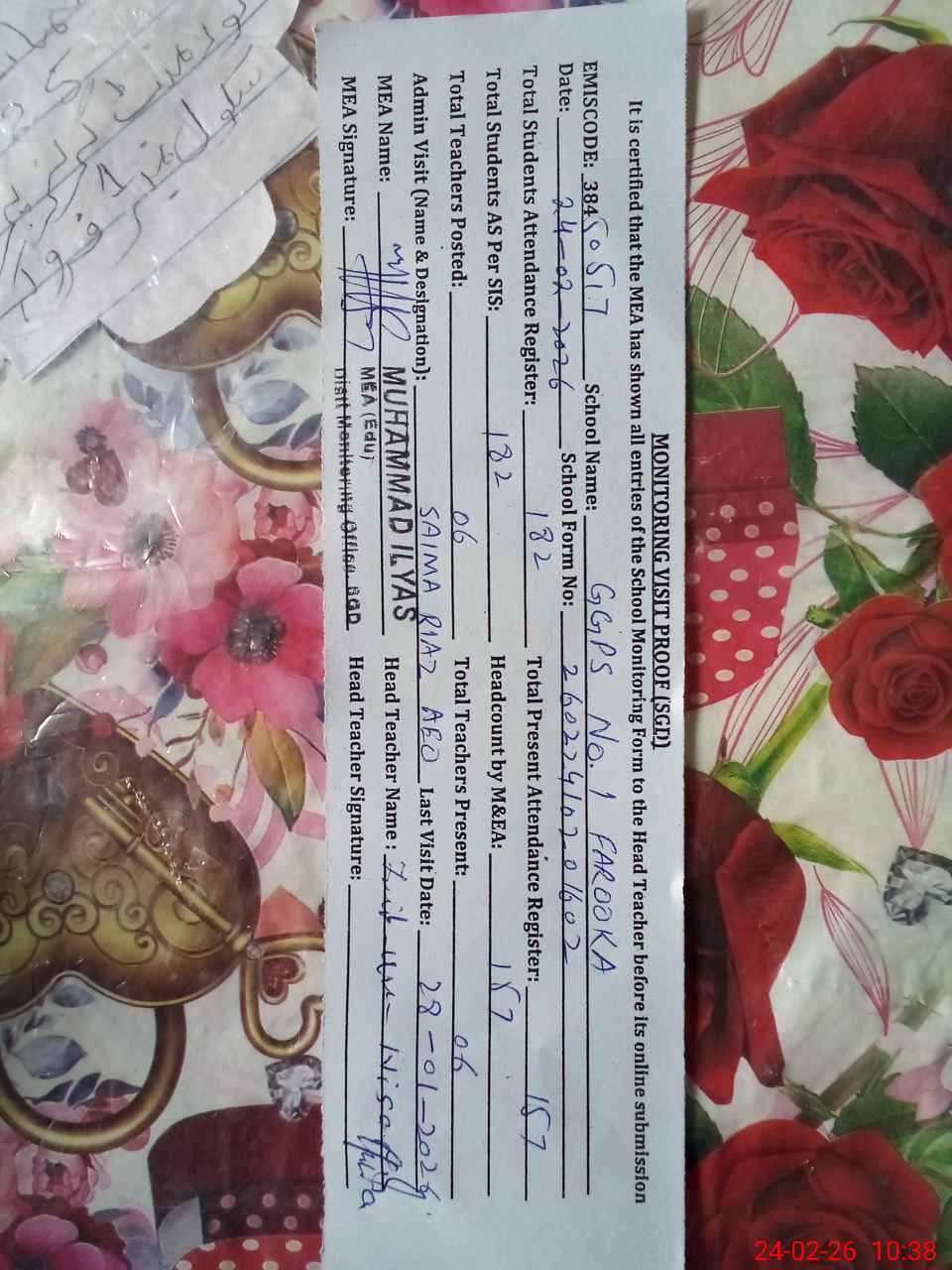 | EMIS Code: 38450517 | Name of School: GGPS NO.1 FAROOKA | |||