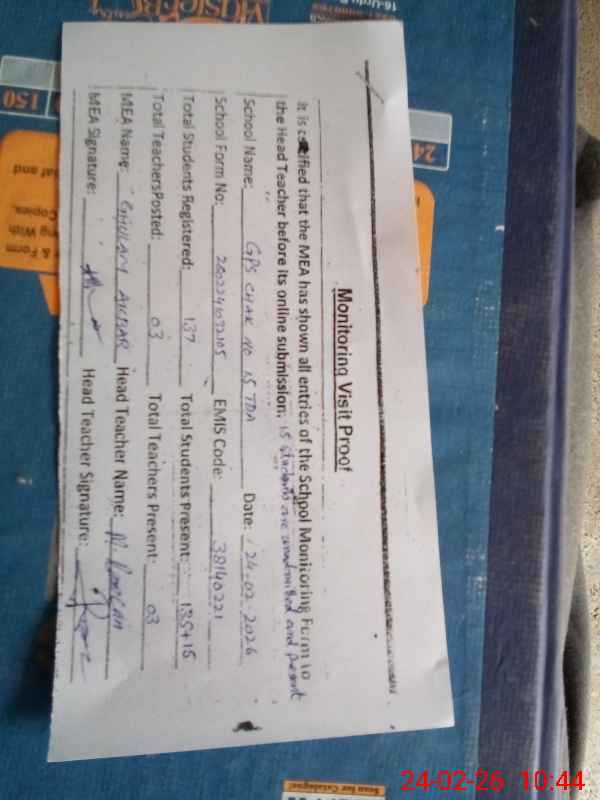 | EMIS Code: 38140221 | Name of School: GPS CHAK NO 15 TDA | |||