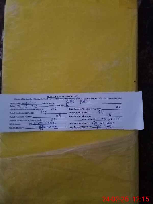 | EMIS Code: 38410330 | Name of School: GPS CHAK NO.8 ML | |||