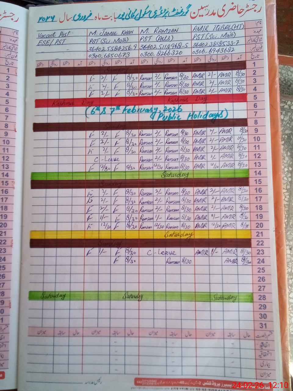 | Name: AM**** IQ**** Designation: (School Headmaster's/Headmistress's) PST Phone/Cell Number: 03**** |