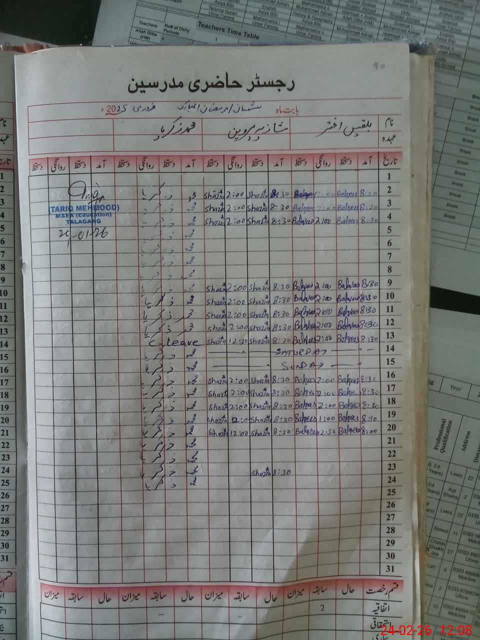 | CNIC | Full Name | Designation | R/C | Absence During Last Calender Month |