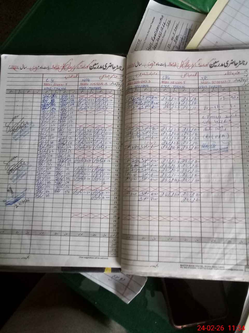 | CNIC | Full Name | Designation | R/C | Absence during last cal. month |