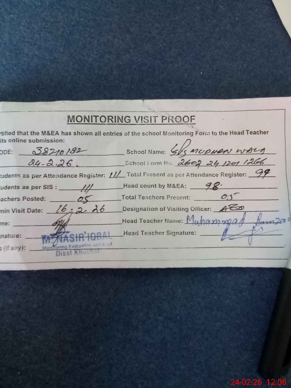 | Certified that this School was Inspected by the Undersigned MEA/DMO Today and the Information Stated Above is as Per Record. | |||||