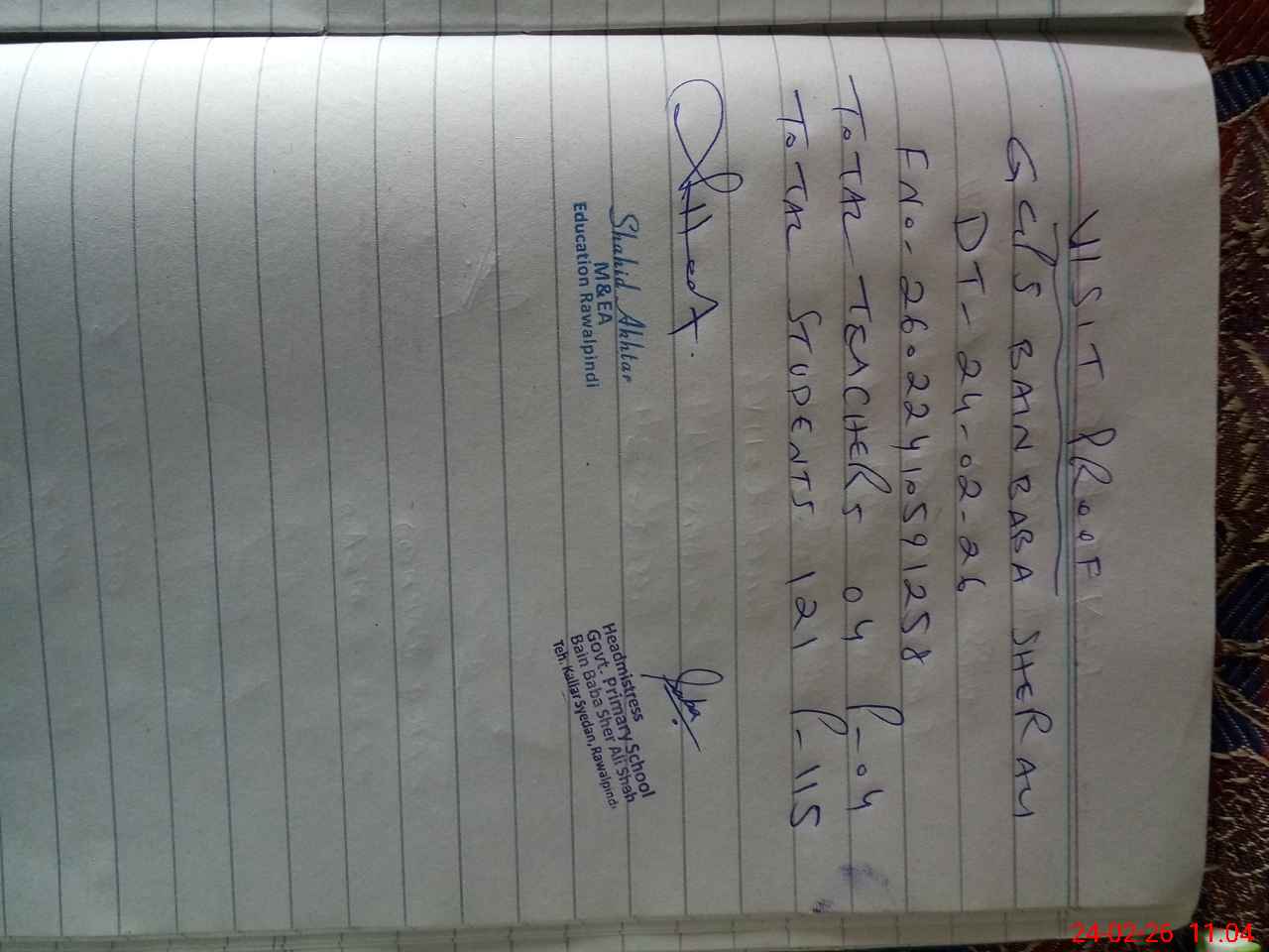 | Attendance Register | Head Teacher | MEA with School | Visit Proof |