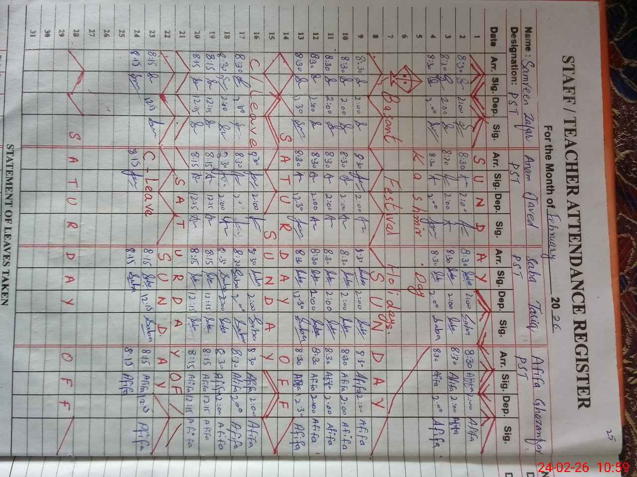 | Leave | Duty | Absent | Maternity | Medical | Ex- Pak |