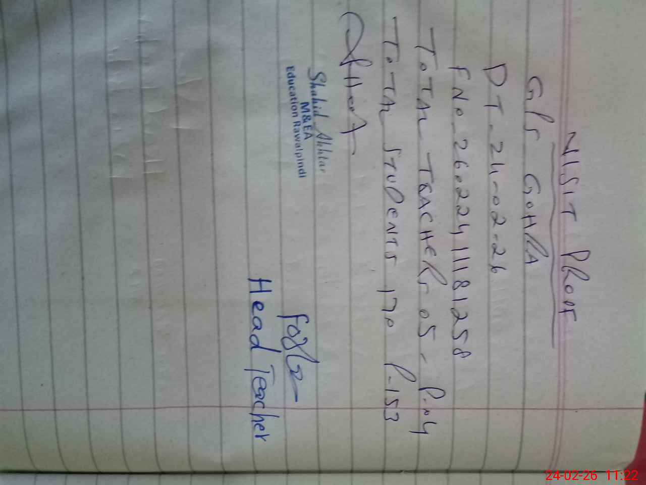 | Attendance Register | Head Teacher | MEA with School | Visit Proof |