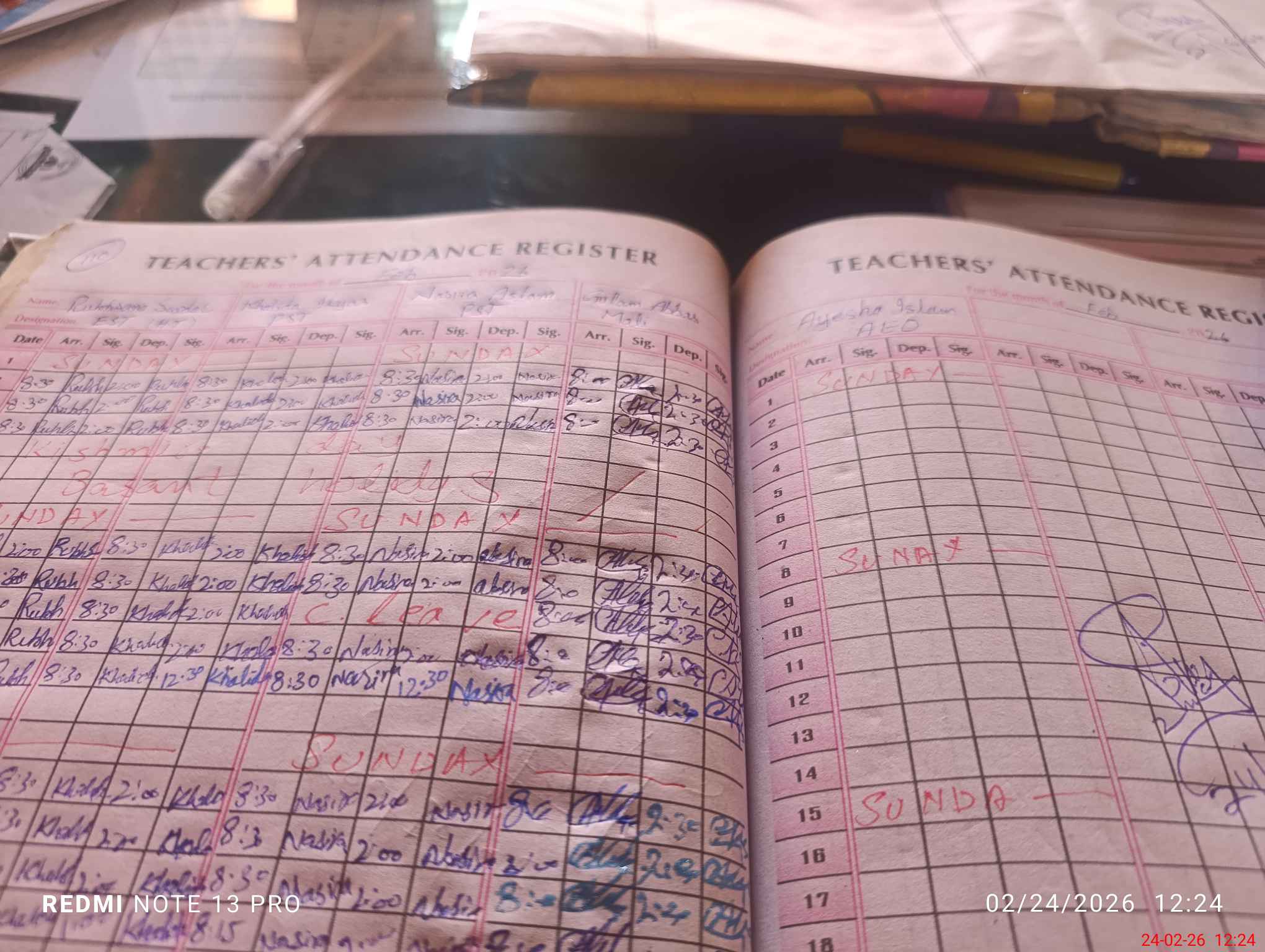 | CNIC | Full Name | Designation | R/C | Absence During Last Calender Month |