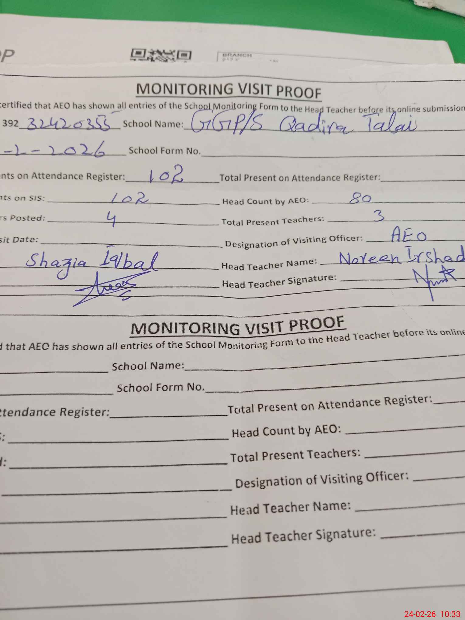 | EMIS Code: 32420355 | Name of School: GGPS QADIRA TALAI | |||