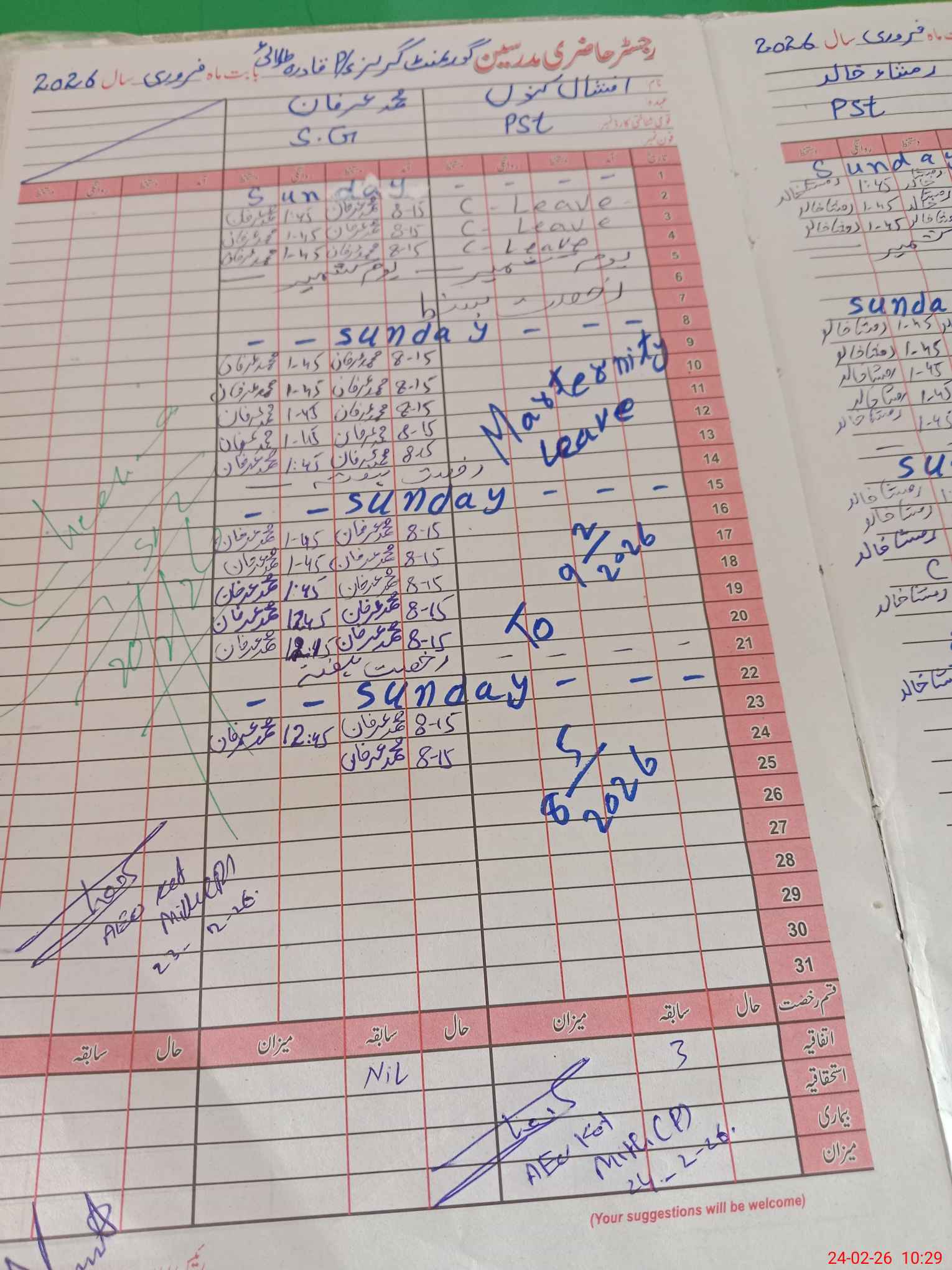 | 32**** | Af**** Ka**** | PST Science/Maths | Regular | 0 | 0 | 0 | 0 | 0 | 0 | 0 | 0 | 0 | Maternity |