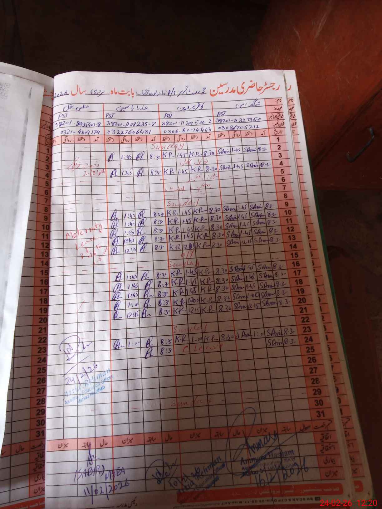 | 38**** | Uz**** Ba**** | PST Science/Maths | Regular | 0 | 0 | 0 | 0 | 0 | 0 | 0 | 0 | 0 | Maternity |