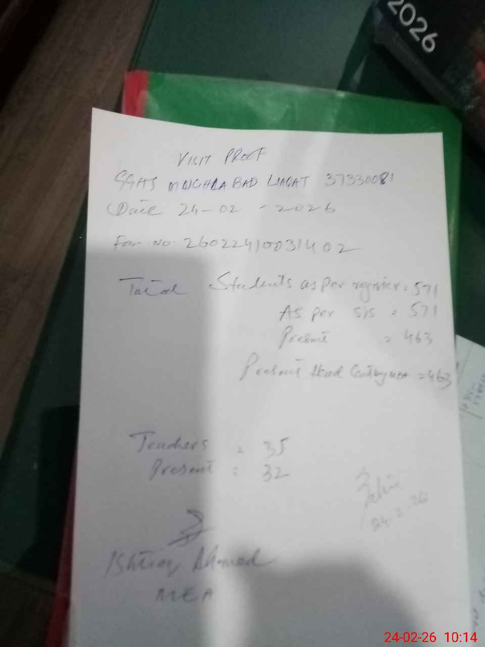 | Certified that this School was Inspected by the Undersigned MEA/DMO Today and the Information Stated Above is as Per Record. | |||||