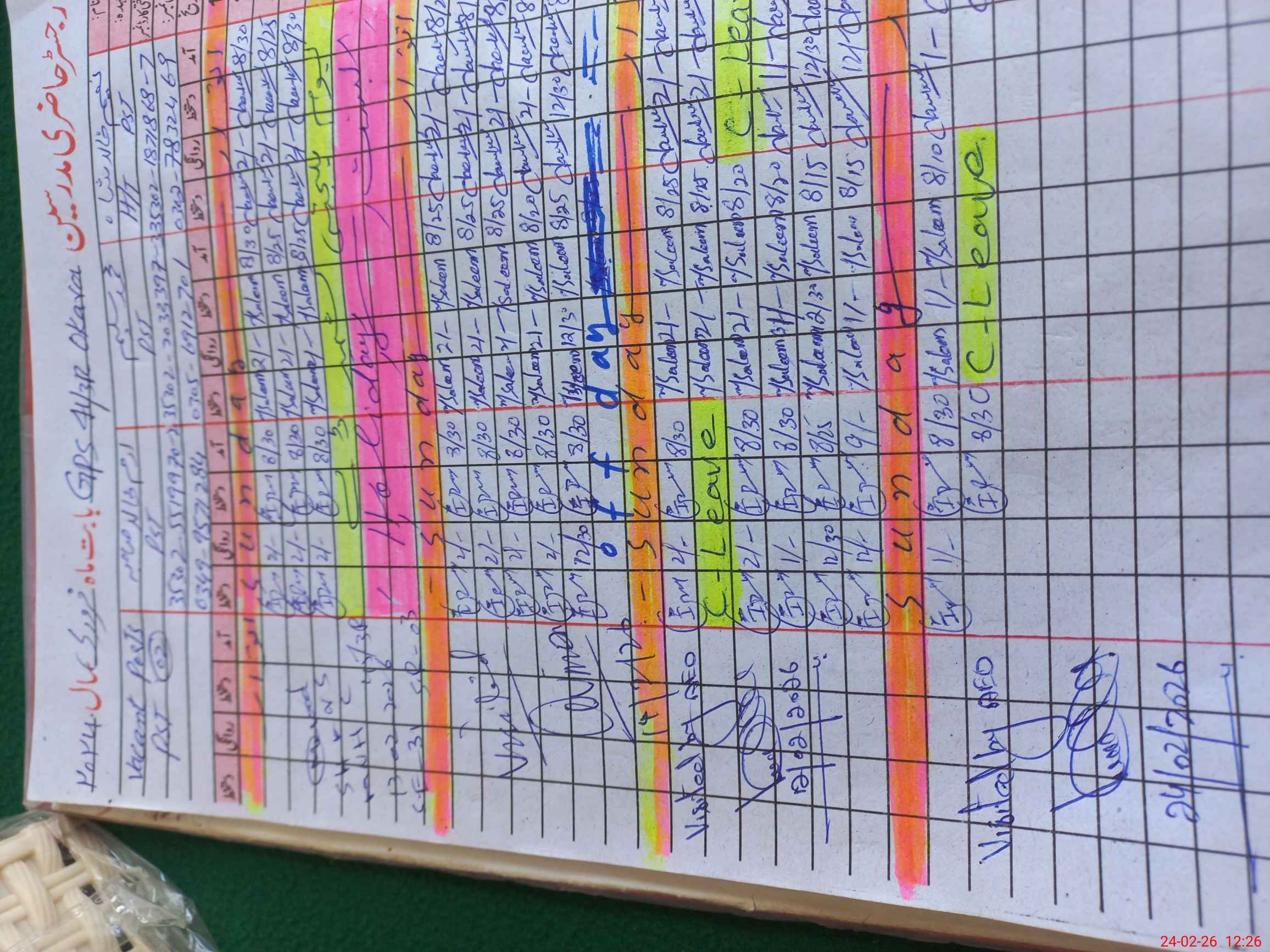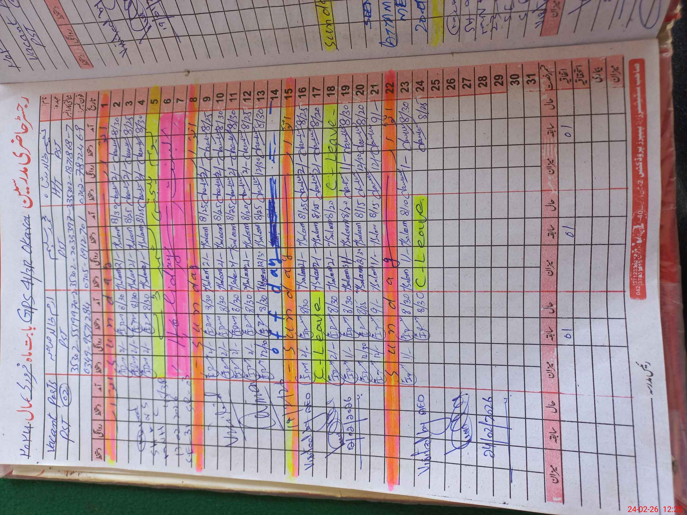 | Leave | Duty | Absent | Maternity | Medical | Ex- Pak |