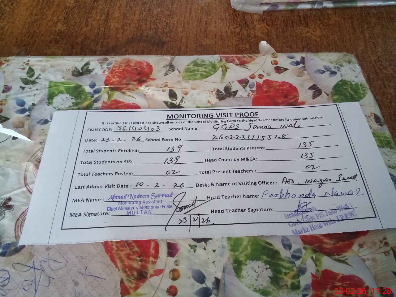 | EMIS Code: 36140403 | Name of School: GGPS JANO WALI | |||
