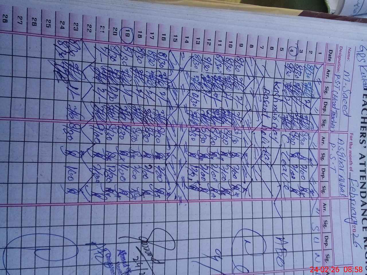 | Name: M.**** Designation: (School Headmaster's/Headmistress's) PST Phone/Cell Number: 03**** |