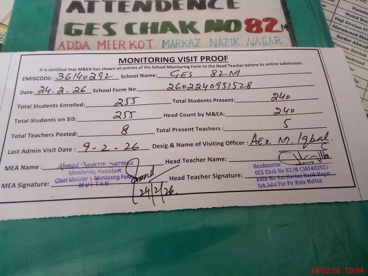 | EMIS Code: 36140292 | Name of School: GES CHAK 82/M JALALPUR PIRWALA | |||