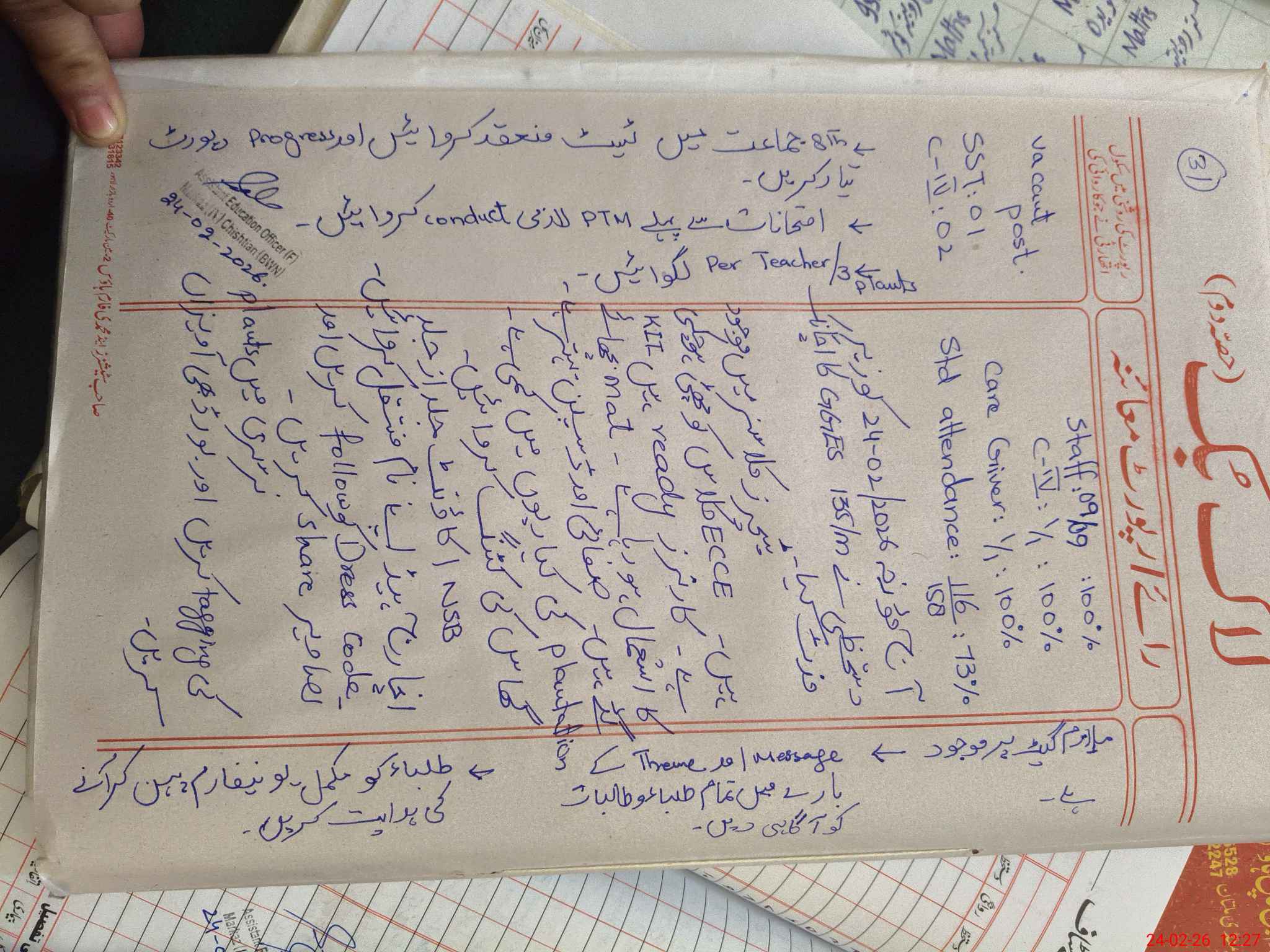 | Attendance Register | Head Teacher | MEA with School | Visit Proof |