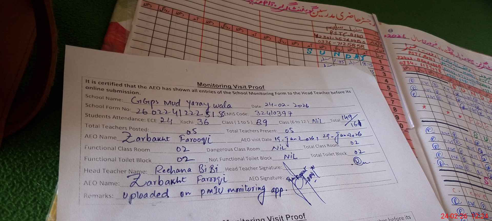| EMIS Code: 32410397 | Name of School: GGPS MUD YARAY WALA | |||