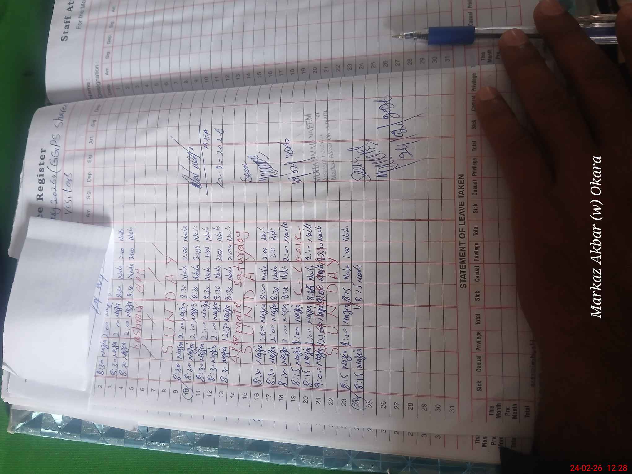 | Leave | Duty | Absent | Maternity | Medical | Ex- Pak |
