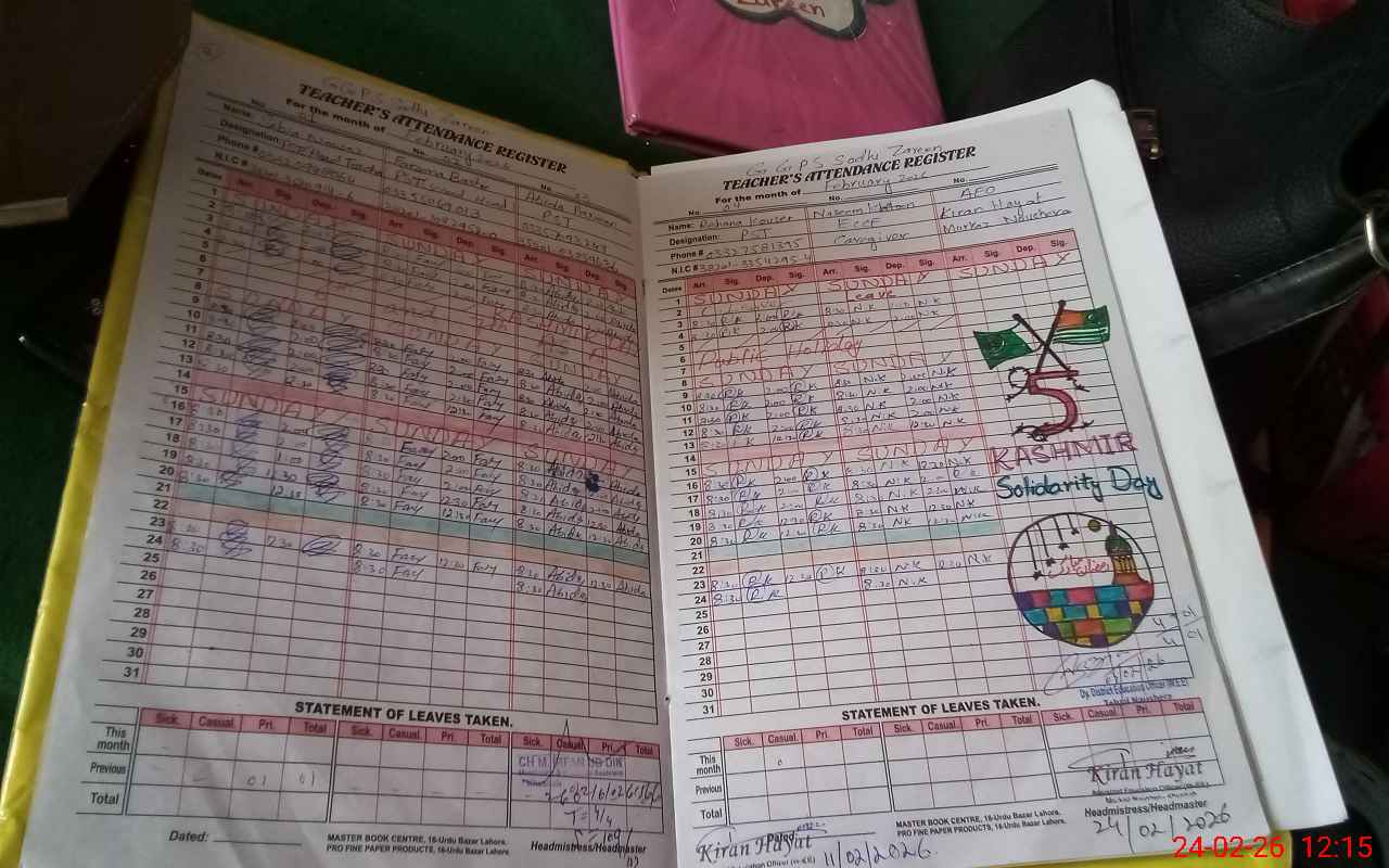 | CNIC | Full Name | Designation | R/C | Absence During Last Calender Month |