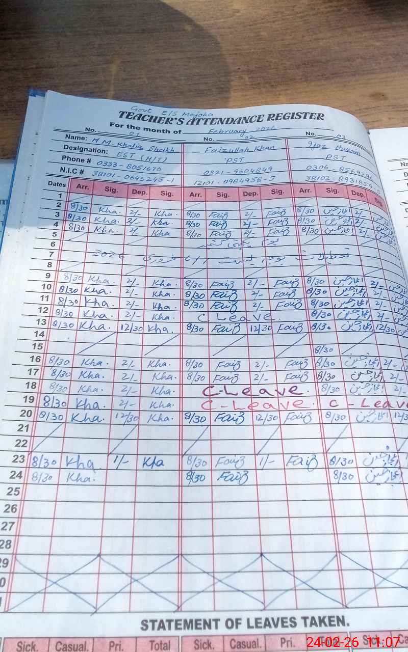 | CNIC | Full Name | Designation | R/C | Absence During Last Calender Month |