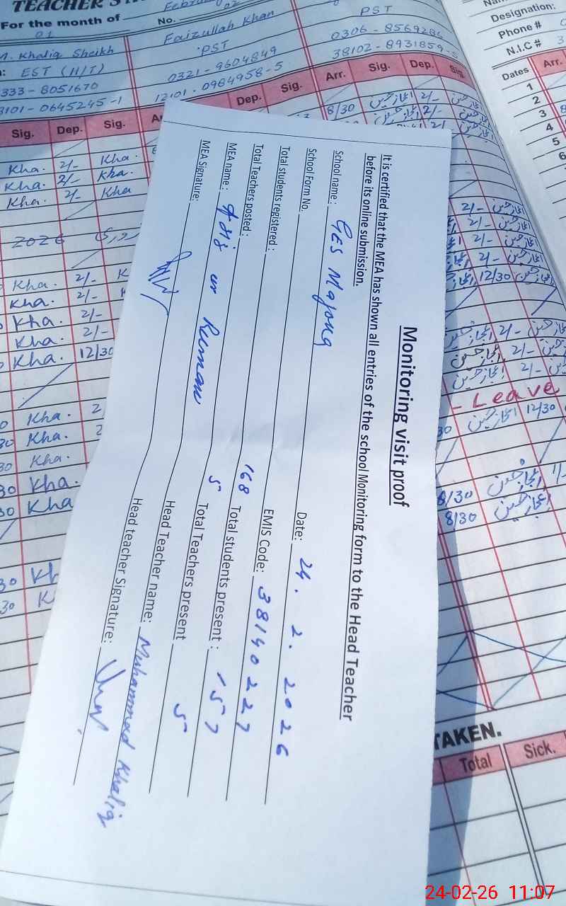 | Attendance Register | Head Teacher | MEA with School | Visit Proof |