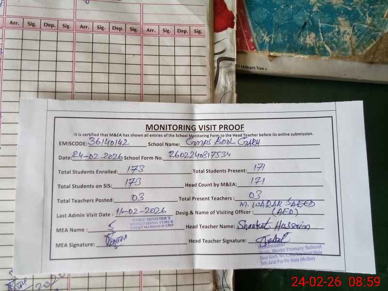 | EMIS Code: 36140142 | Name of School: GMPS BOOL GARH NO.1 | |||