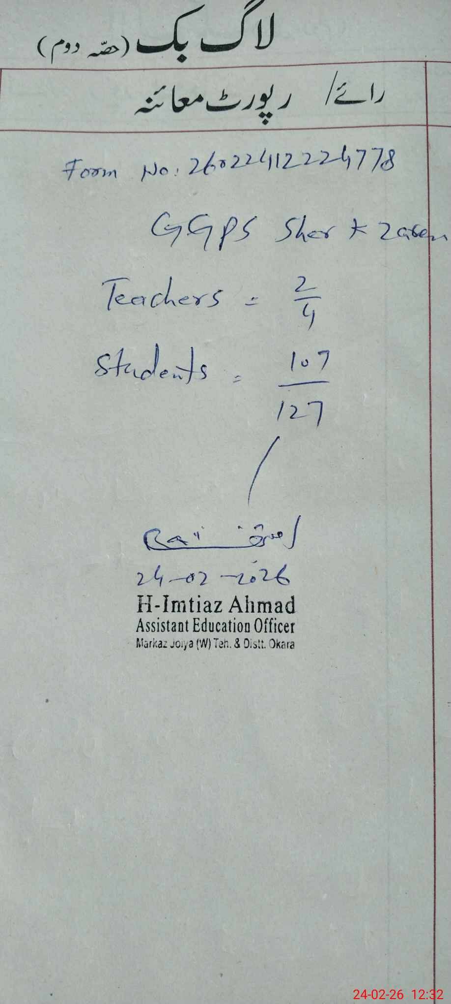 | EMIS Code: 39320765 | Name of School: GGPS SHERKAY ZAREEN | |||