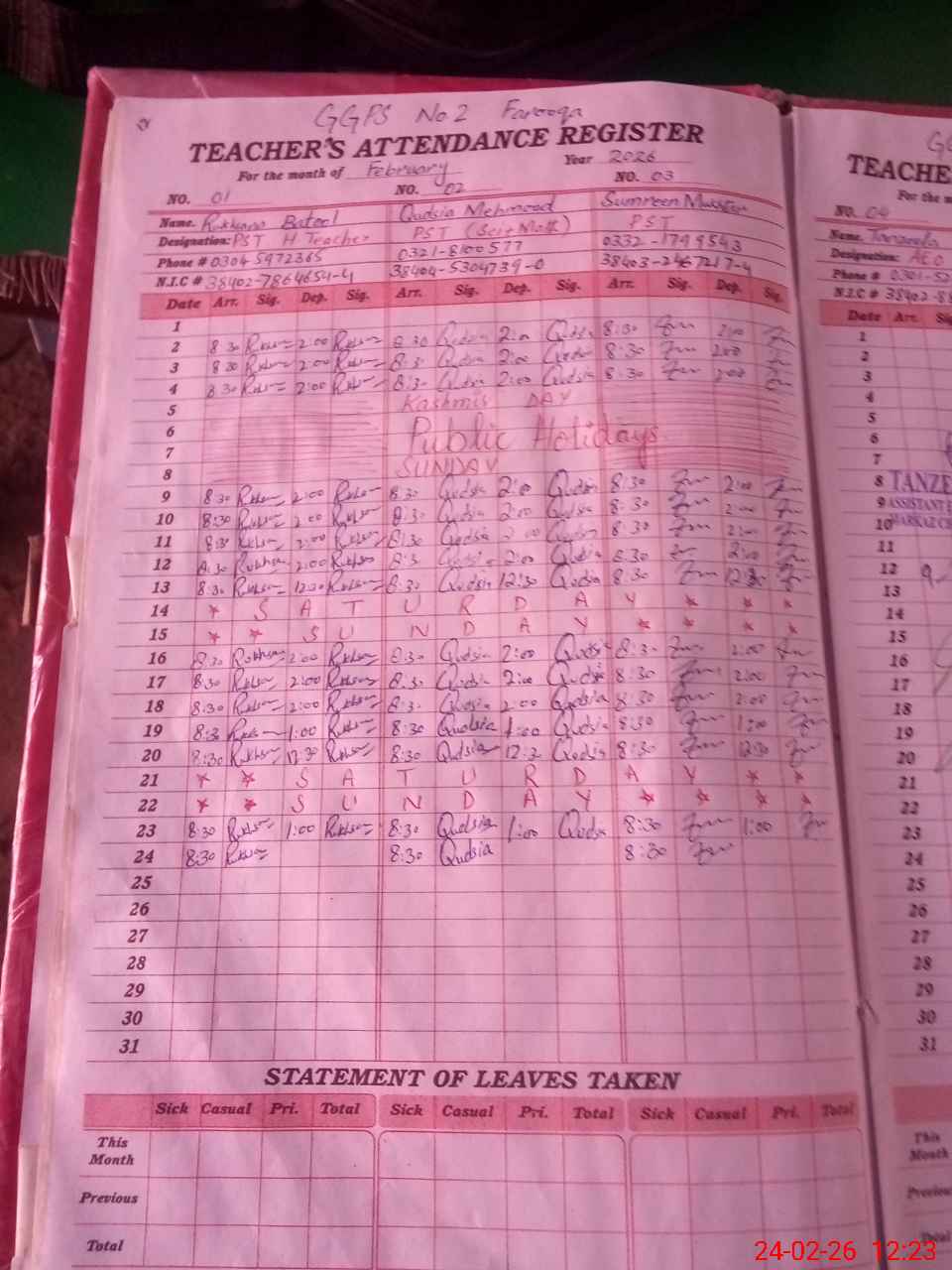| Name: RU**** BA**** Designation: (School Headmaster's/Headmistress's) PST Phone/Cell Number: 03**** |