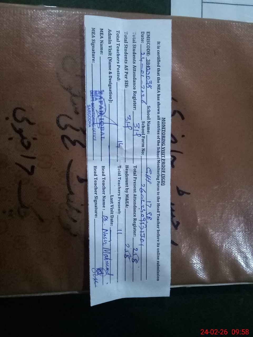 | Certified that this School was Inspected by the Undersigned MEA/DMO Today and the Information Stated Above is as Per Record. | |||||