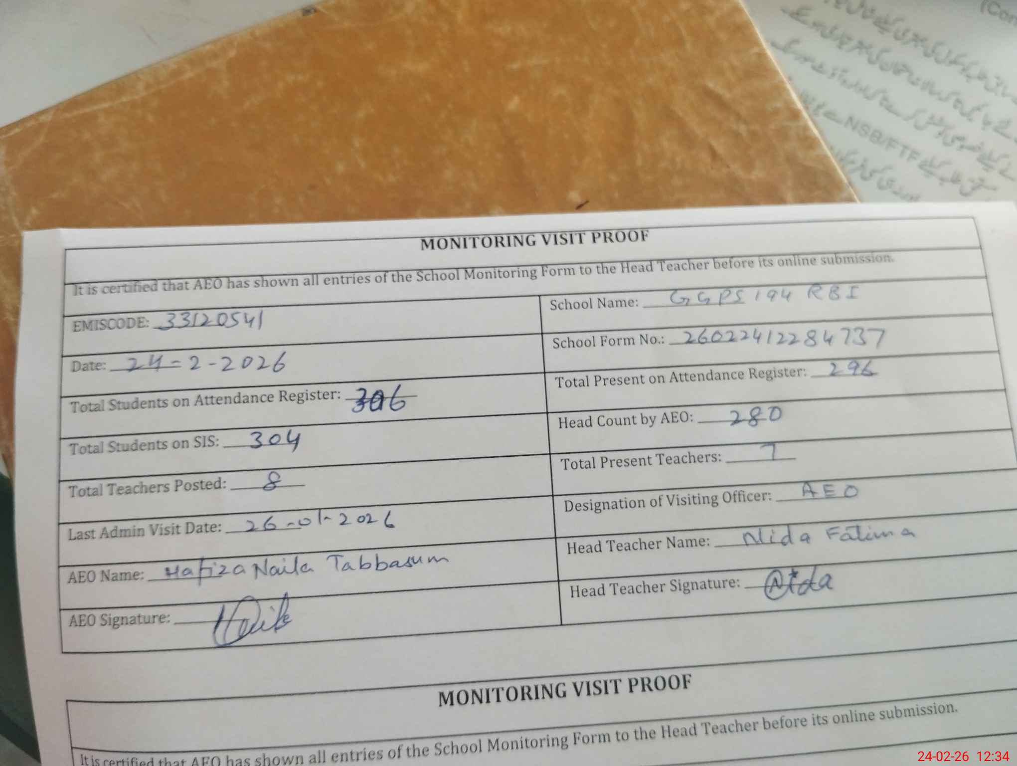 | EMIS Code: 33120541 | Name of School: GGPS CHAK 194 RB I KHURRIANWALA | |||