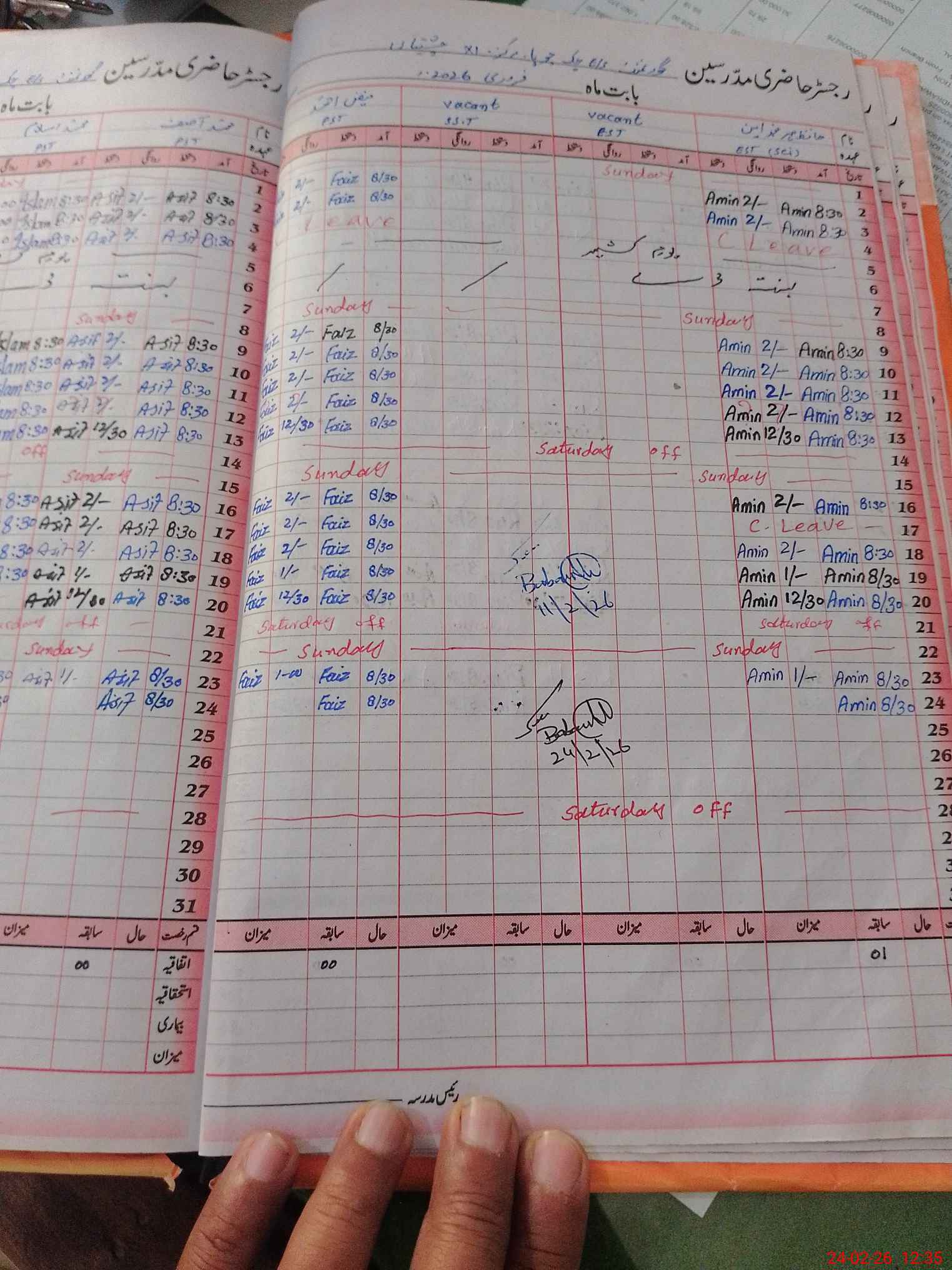 | Leave | Duty | Absent | Maternity | Medical | Ex- Pak |