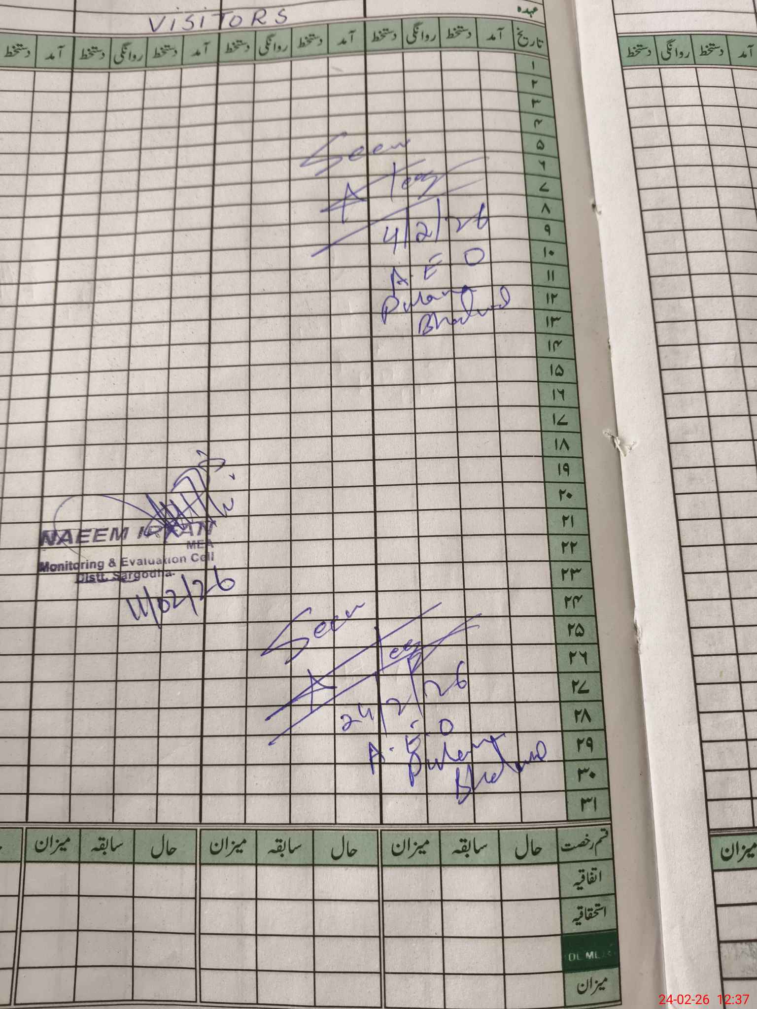 | Attendance Register | Head Teacher | MEA with School | Visit Proof |