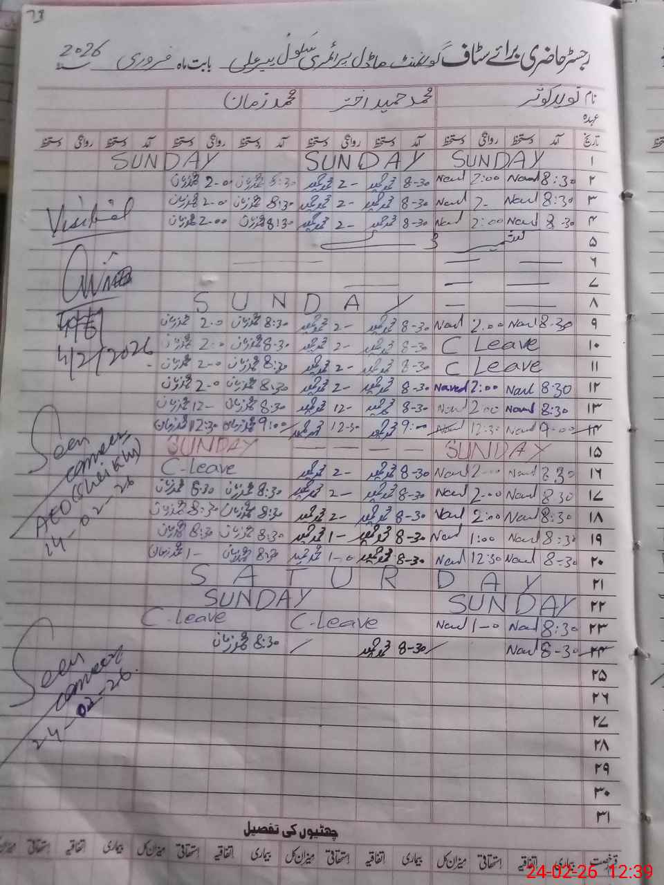 | CNIC | Full Name | Designation | R/C | Absence During Last Calender Month |