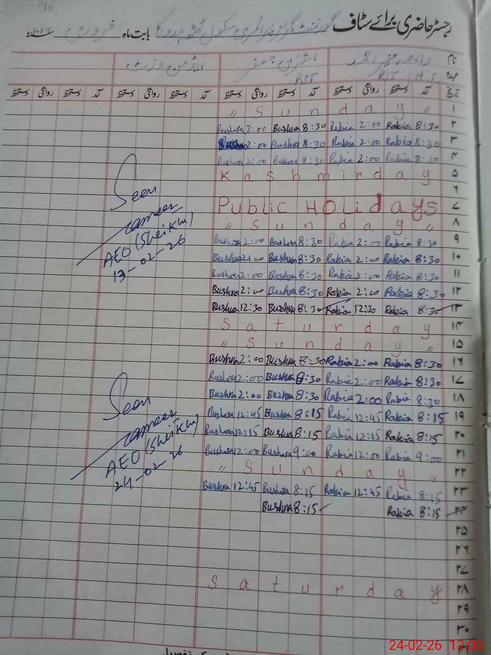 | CNIC | Full Name | Designation | R/C | Absence During Last Calender Month |